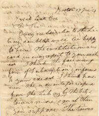 Josiah Little founded the Newburyport Public Library in Massachusetts in 1854. This cover was mailed to him from Boston by Samuel Swett on June 27, 1854. The cover is an example of a folded letter where the letter is folded in such a way that it also serves as an envelope. In the letter, Swett, an author who was born in Newburyport, provides Little with advice on the formation of the library. Little's original intent was evidently to form a subscription library, but Swett points out the advantages of establishing a public library supported by the City of Newburyport and the adjacent towns. Massachusetts passed a a general law providing for the establishment of free public libraries in 1851. Newburyport was one of the first ten public libraries established under the new law. The library was opened to the public in 1855, one year after the Boston Public Library opened to the public. A history of the library can be found here.