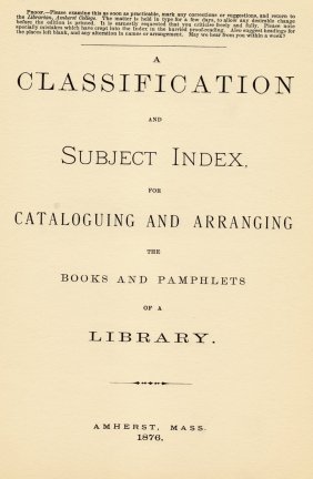 prospectus of the Dewey classification system which distributed by Dewey in 1876